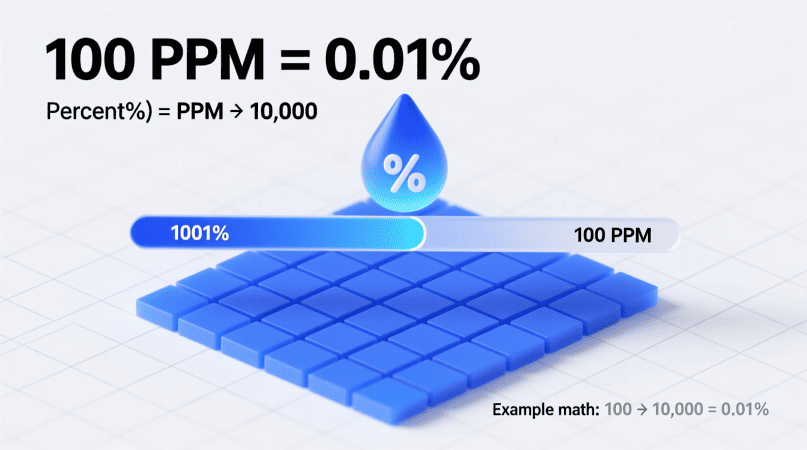 Convert 100 ppm to percent (0.01%) quickly and understand what this concentration means in water, chemistry, and agriculture.