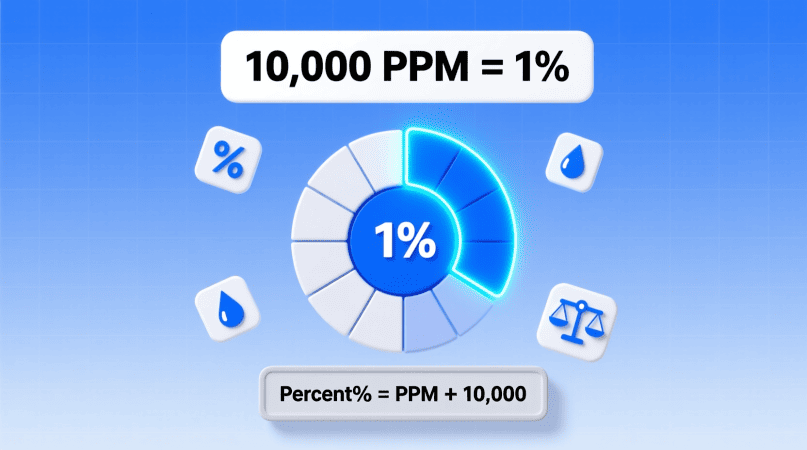Learn how to convert 10,000 ppm to percent (1%) with an easy formula and real-world examples. Understand ppm meaning in water testing, fertilizers, and chemistry on PPMCalculator.