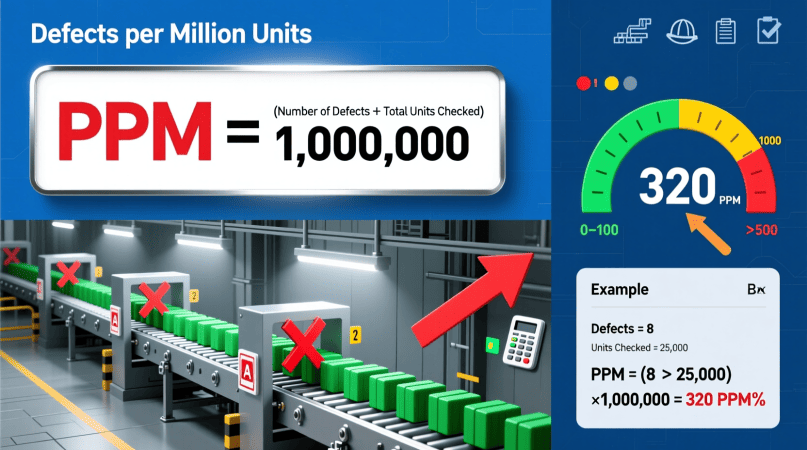 PPM= Number of Defective Units / Total Units Produced ×1,000,000
