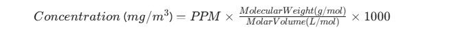 PPM = mg/m³ ÷ [(MW / R) × (P / T)]