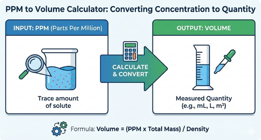 Using our PPM to Volume Calculator is straightforward and designed for optimal accuracy. You only need three key pieces of information:
